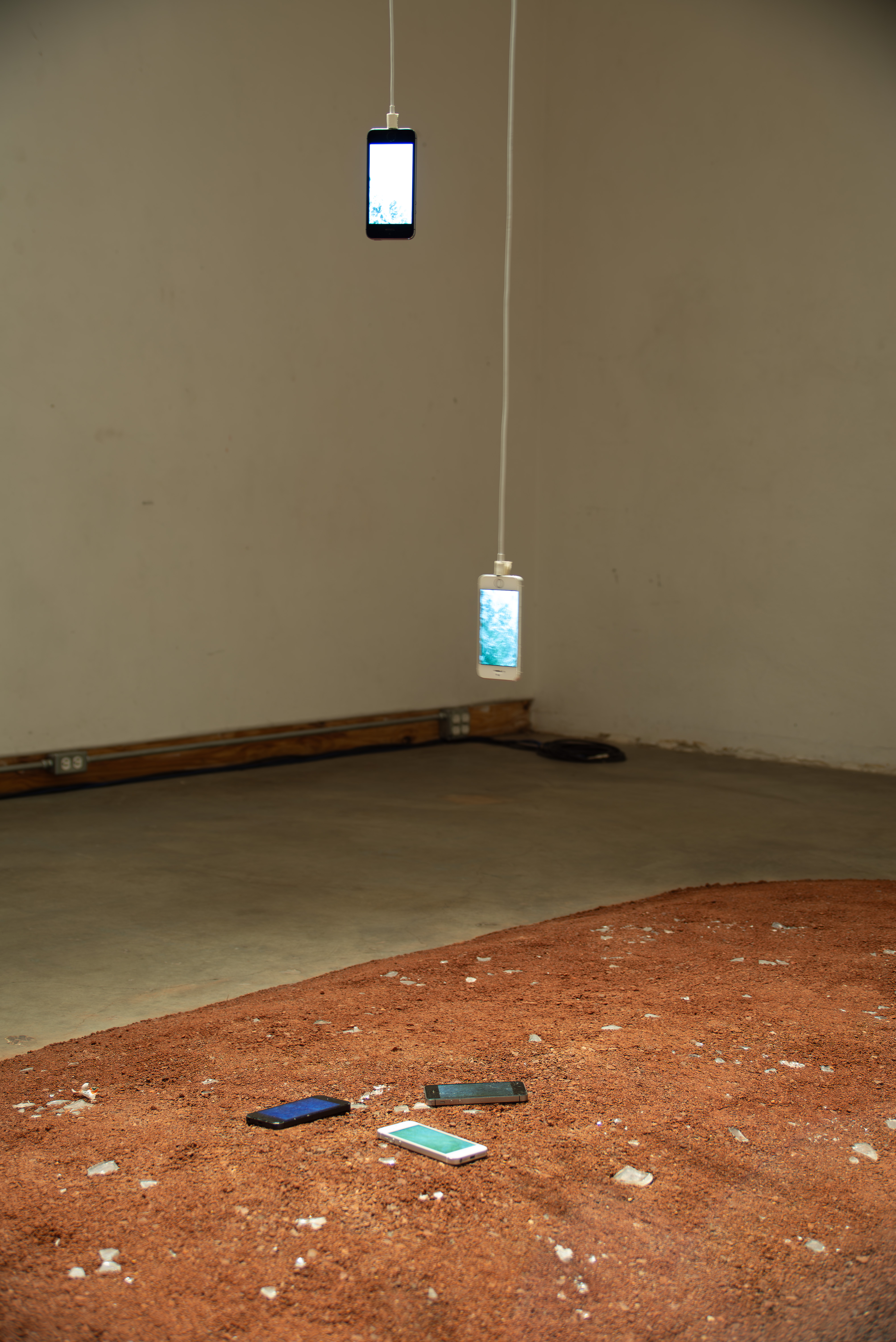 5 channel video installation and sound, half a ton of red clay, broken glass collected from the sidewalks of Phoenix, AZ.